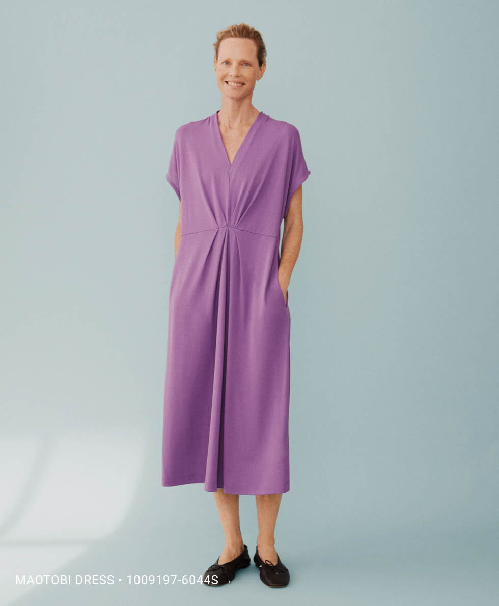 Give your wardrobe a breath of fresh air with beautiful shades of purple. Steal the spotlight with this dress made from soft jersey. A feminine dress for those days when you need to wear colour in your life.