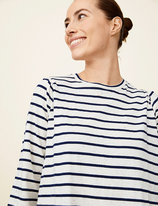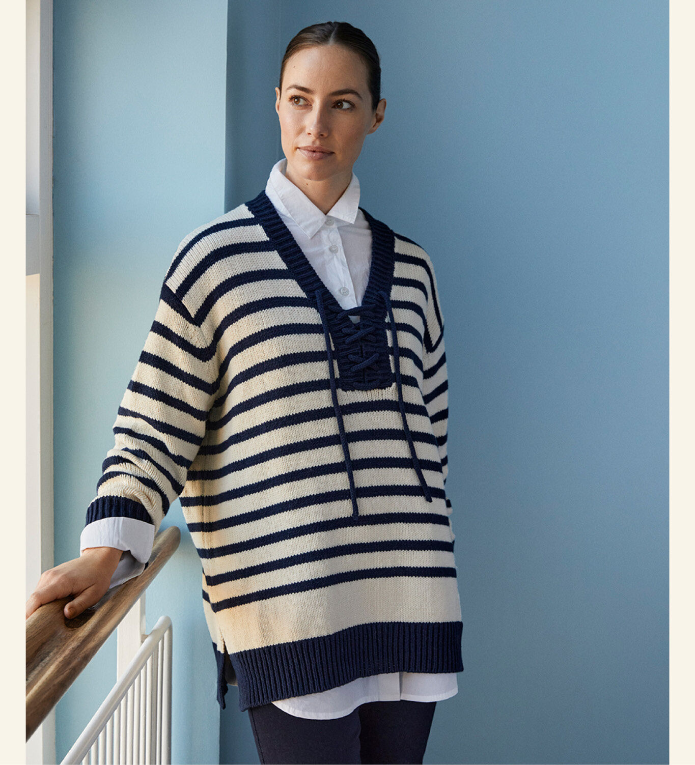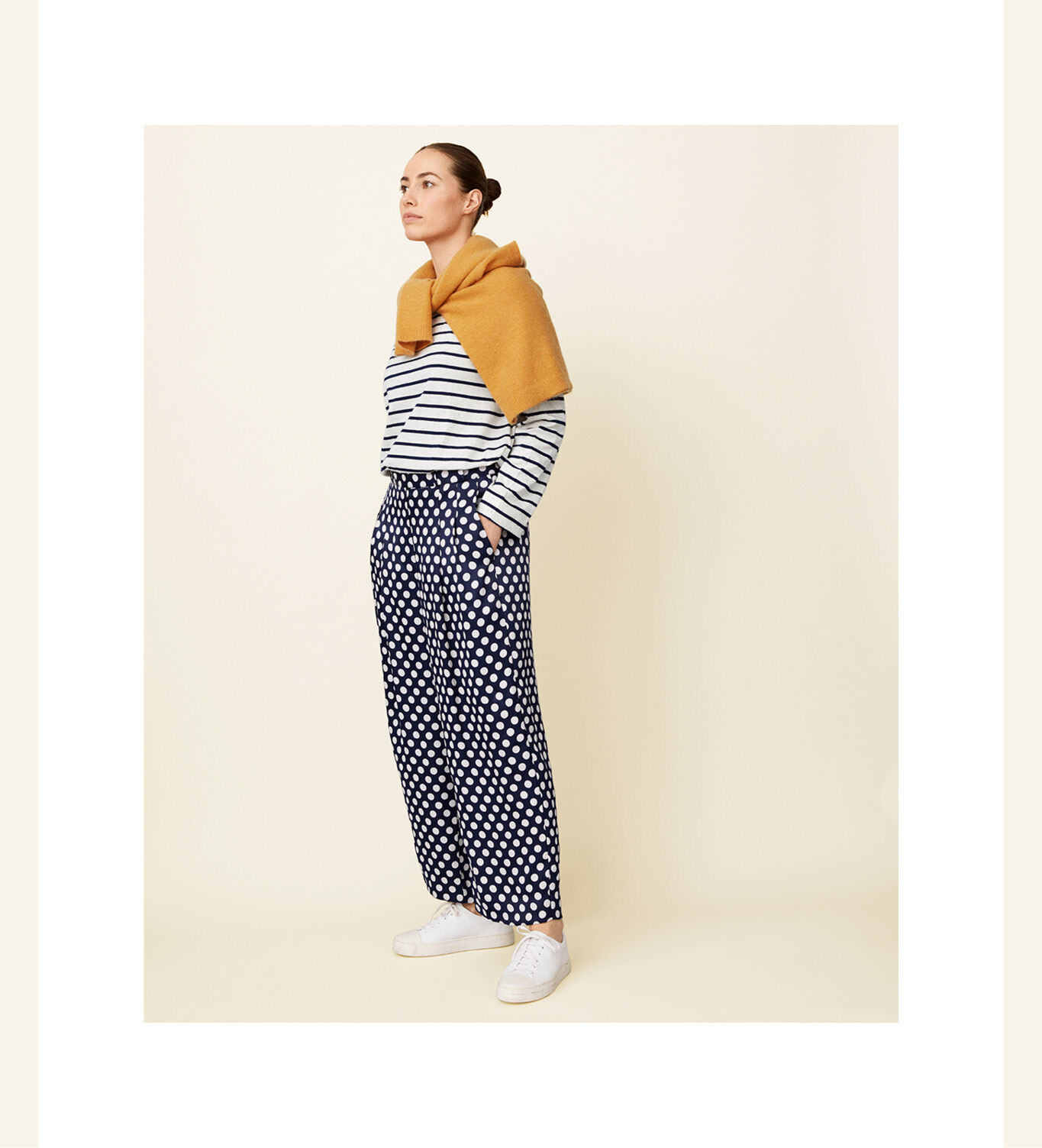 An easy season update is the maritime knit with a dab of yellow and a joy-inspiring hand-drawn print from our design team. To be honest: This is all you need for spring.
