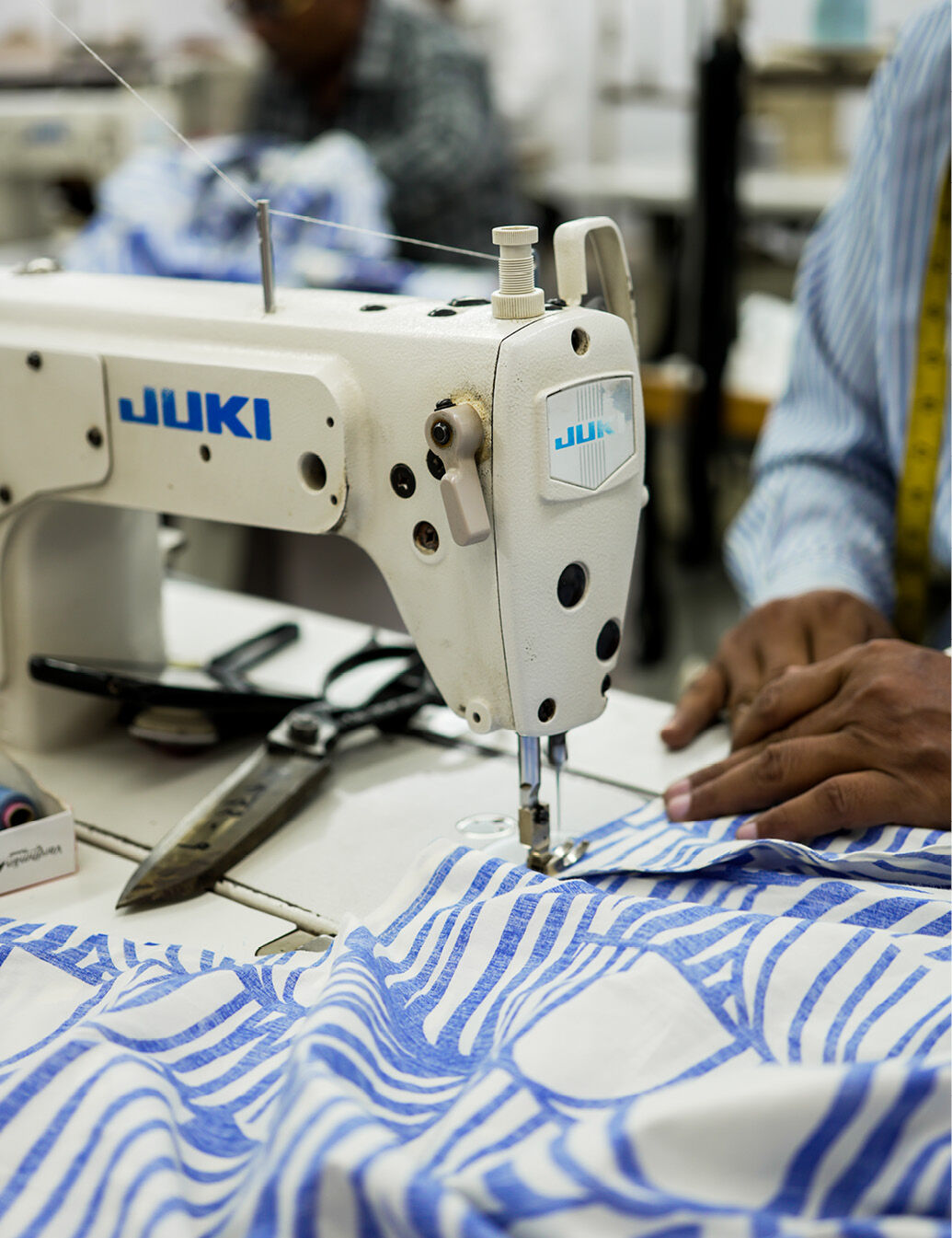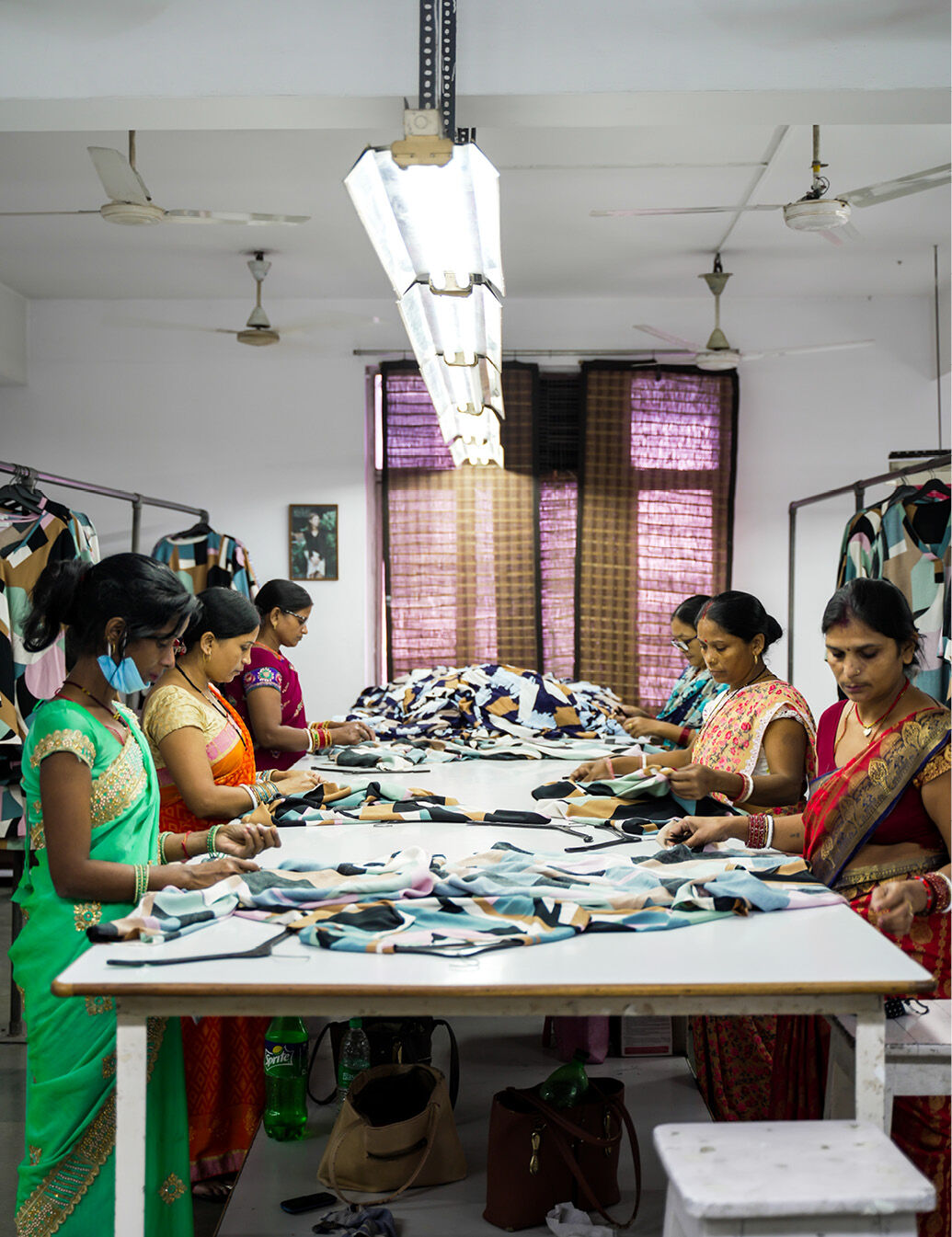 Most of the employees at Punta’s factory are men, mainly because men are trained tailors in India. We ask Punta if it has been difficult as a woman to manage a business in India. She explains that India is a contrasting society where women can hold positions in politics, in the financial sector and be successful business people... but that having a man by your side has its advantages. However, Punta’s own experience was that it was hard at first, but that she slowly gained respect and things gradually improved.