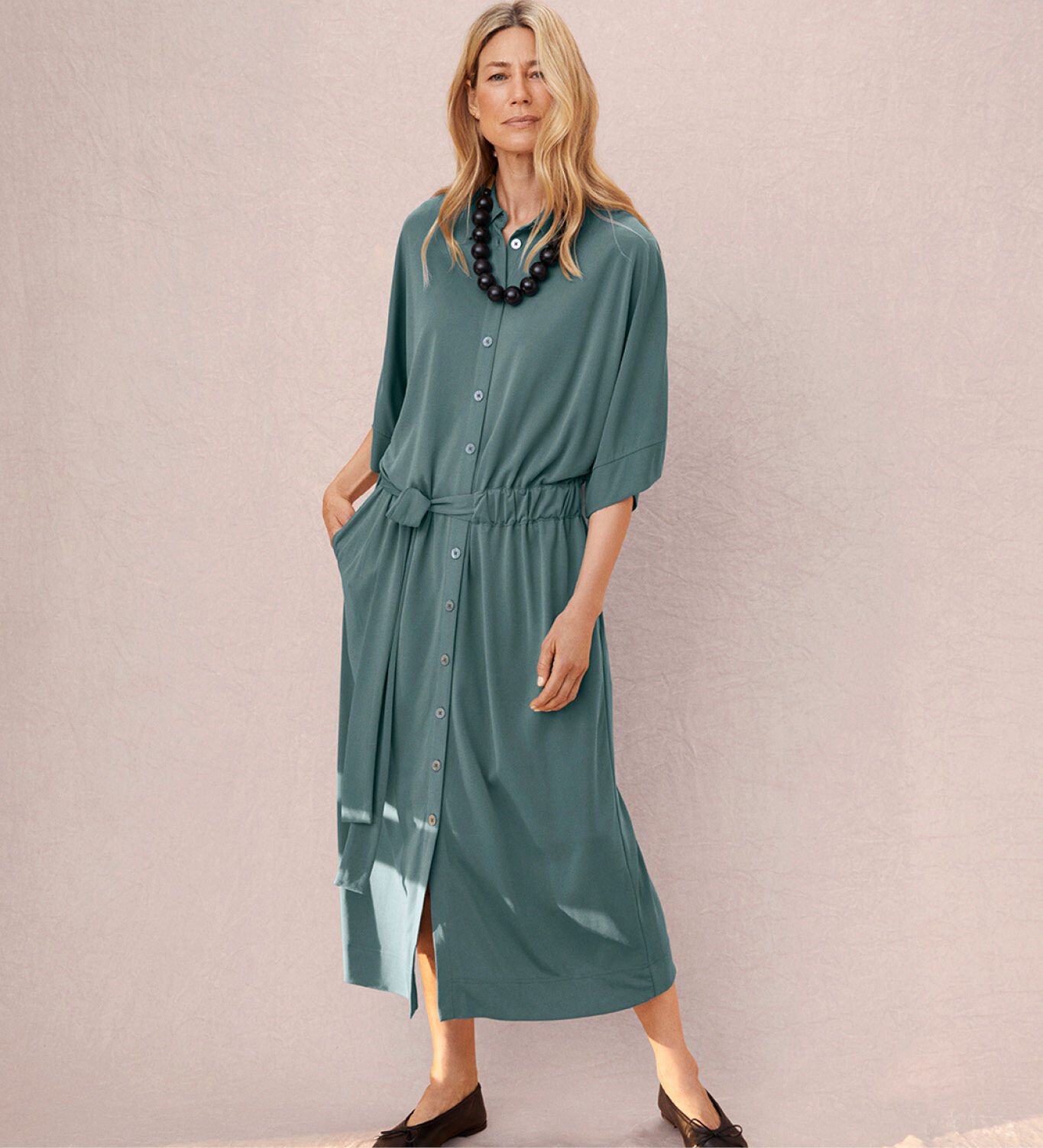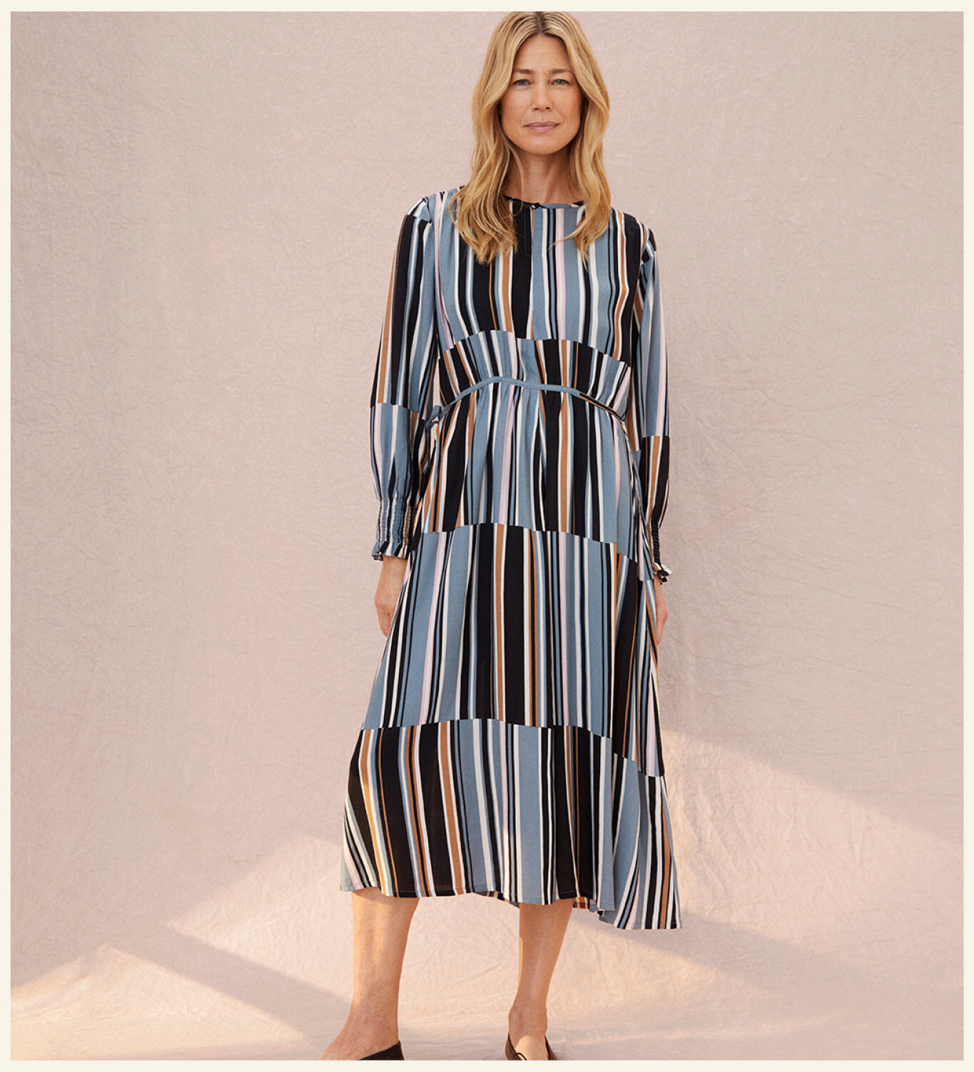 It's the little details that make all the difference. The beautiful floral print is offset by black contrast ribbons. The soft blend of cotton and linen, designed in a generous, figure-hugging fit, makes the dress an instant spring favourite.