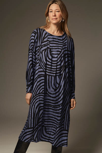 The soft viscose falls effortlessly and luxuriously, while the graphic print and delicate yellow details give it a playful twist.