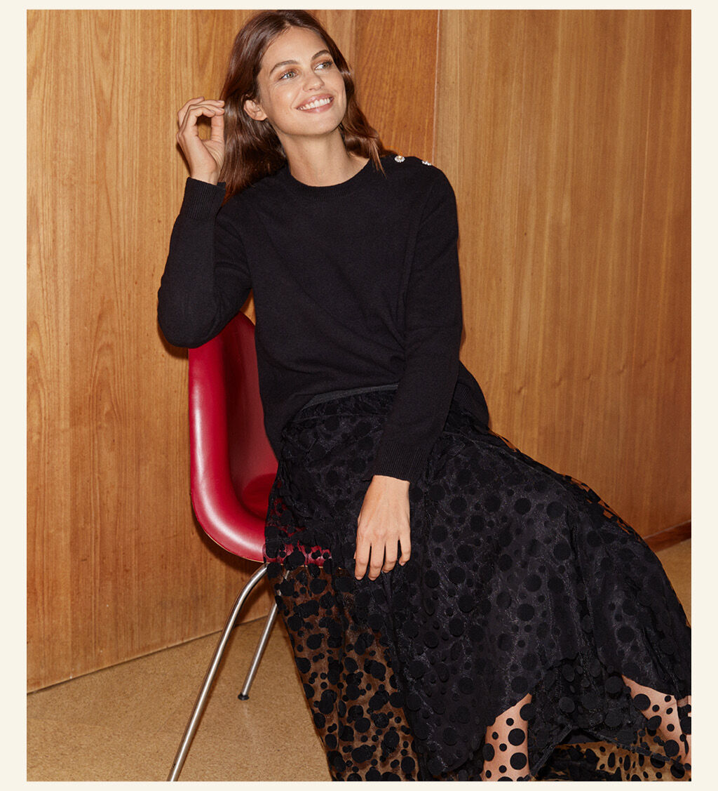 This winter collection is no exception. Here you’ll find both a bubbly, polka dot print as well as transparent tulle decorated with delicate velour dots.