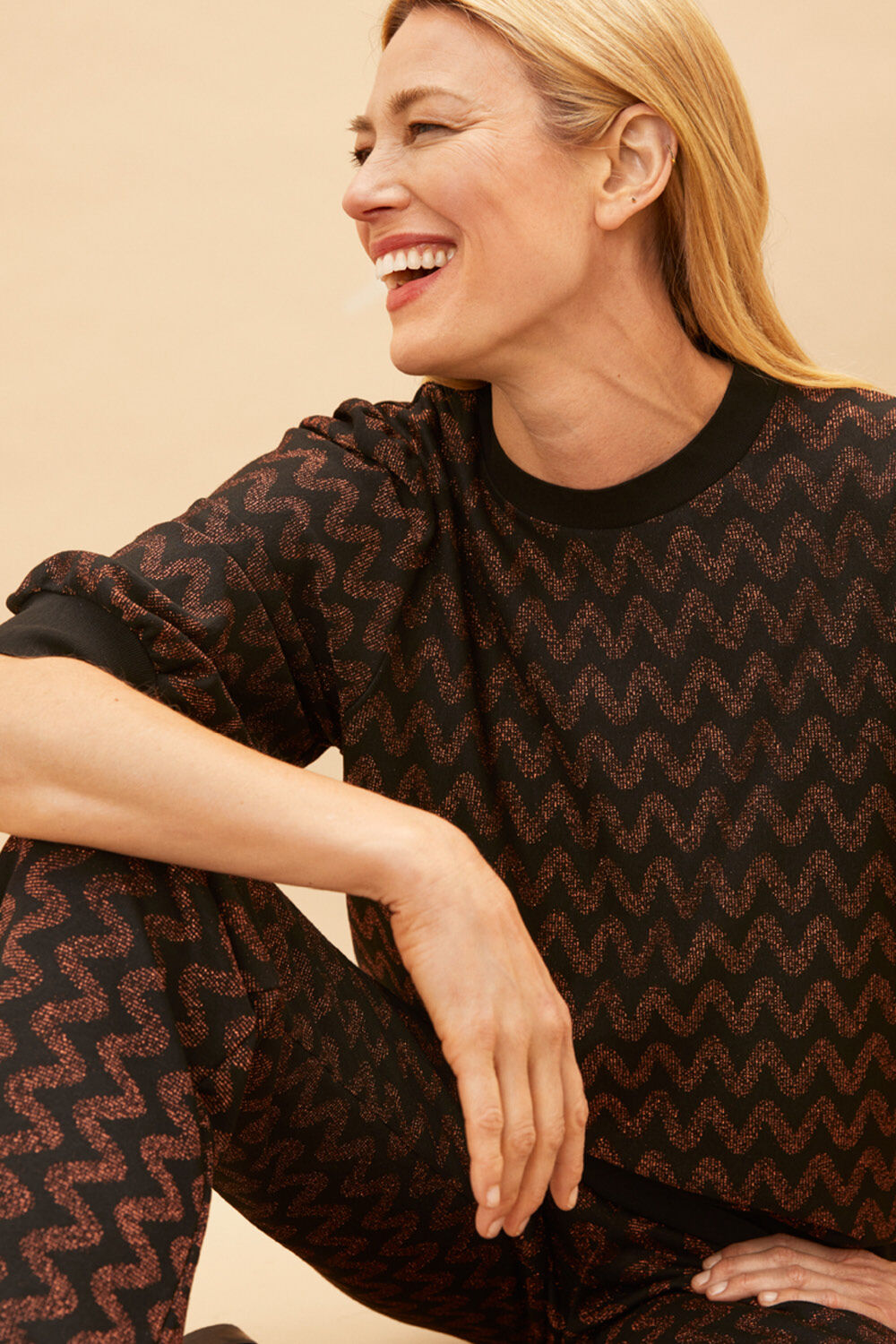 Everyone should have some glitter in their wardrobe. Sequins are brilliant for those days when you need to lift your spirits. Go all-in with matching head-to-toe sequins or wear the trousers with a chunky knit or shirt.